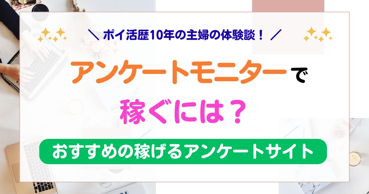私は、アンケートモニター歴10年・多いときで月に10万円ほど稼いでいるので、ぜひ参考にしてください。