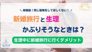 新婚旅行を予定している方で、生理期間と被る可能性があると焦りますよね。私も新婚旅行に行った際に、生理と新婚旅行が被ってしまってとても後悔しました。その経験から、旅行に行く際には必ずピルで生理期間をずらすようにしています。自分が新婚旅行で生理...