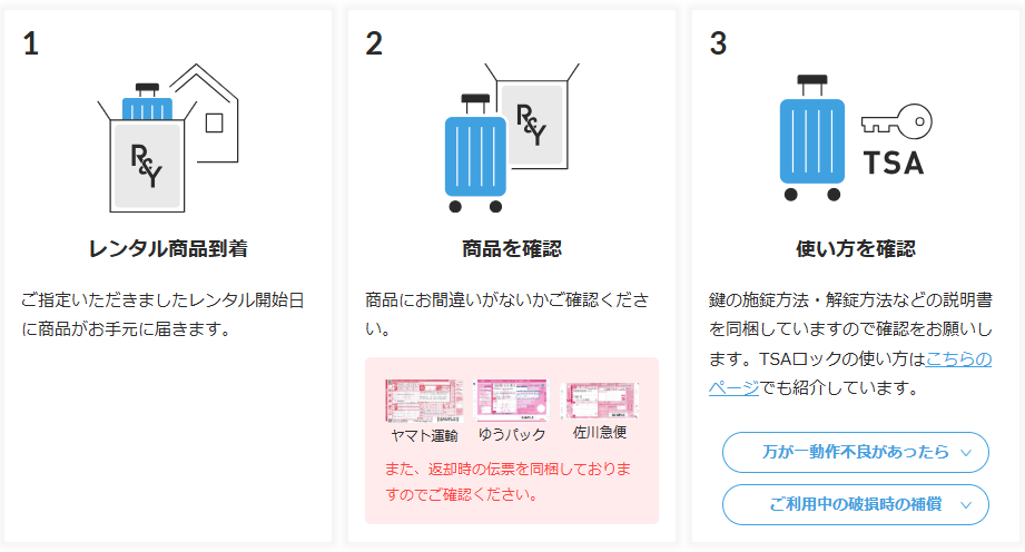 スーツケースをレンタルする流れはとても簡単で、複雑な作業などは一切ありません。